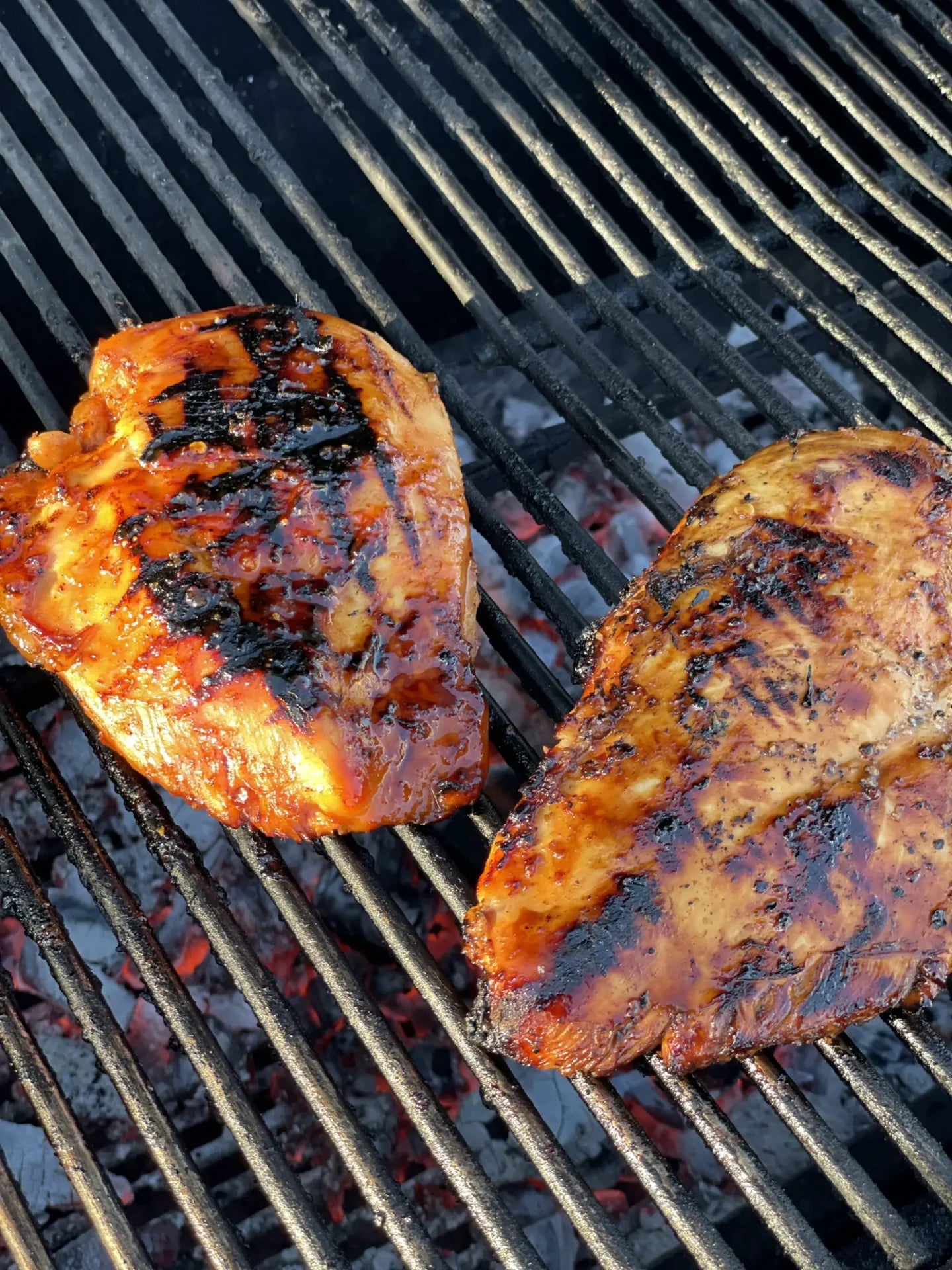 Remember to reserve the remaining marinade and baste the outside of the chicken breast every few minutes when you flip it. The more marinade you add, the better color, caramelization, and flavor you are going to get.