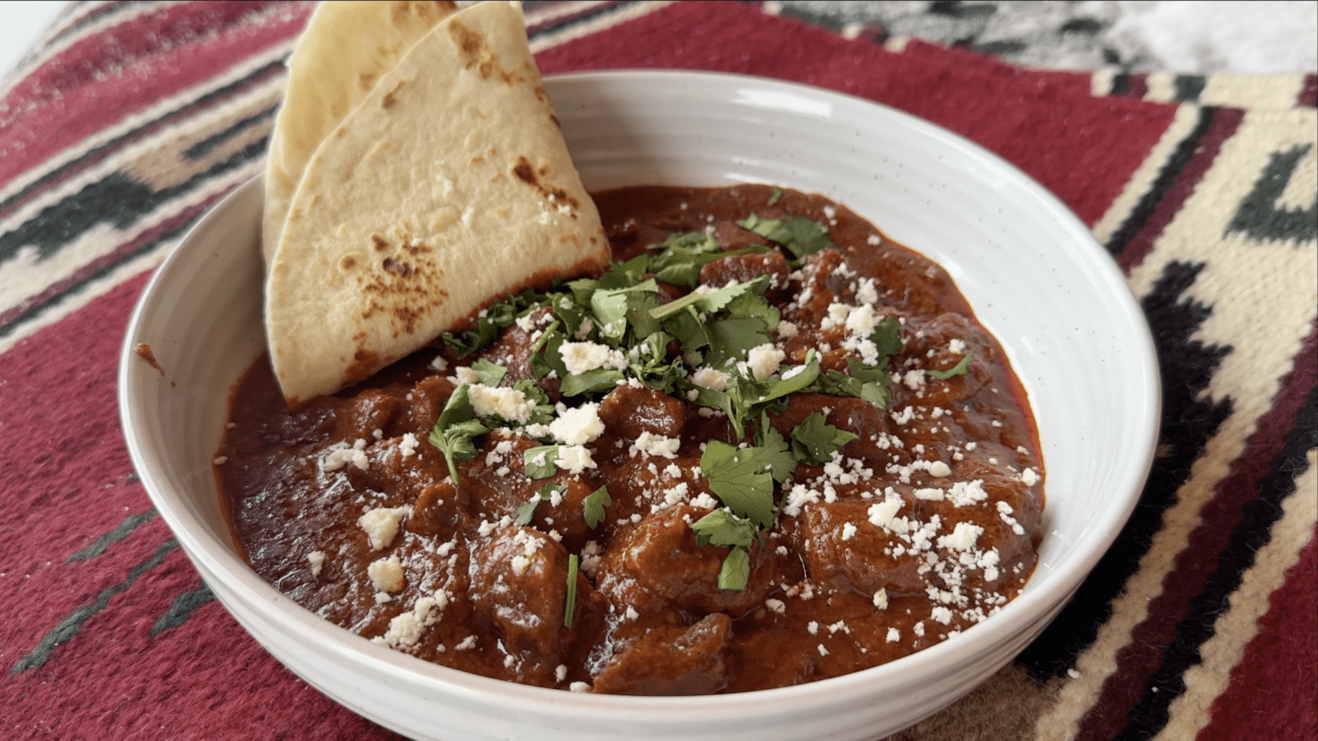Tip: Reserve the strained broth from boiling the chilies. What you don't use in this recipe can be frozen and used to flavor future stews and soups.