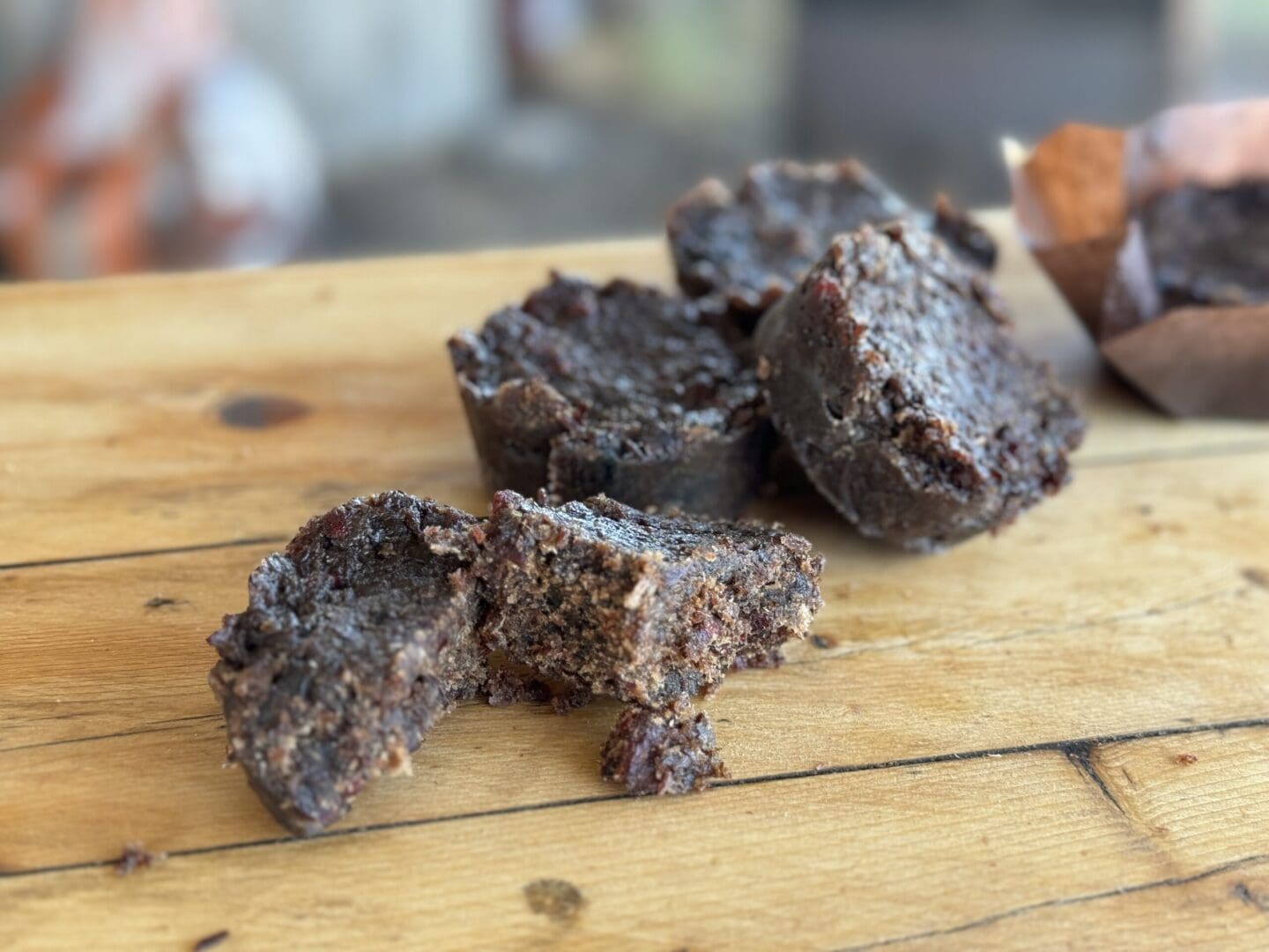 - Scoop the mixture out into lined muffin tins or form into about bars or balls. Place in the fridge and let cool for about 2 to 3 hours, or you can let it cool on a wire rack at room temperature.