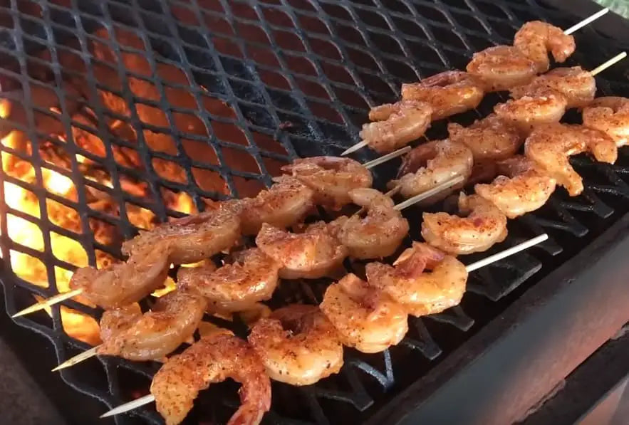 This recipe is simple and full of flavor. I use wooden skewers, soaked in water for about 45 minutes before we start cooking. I also like to warm up the shrimp before putting them on the fire to prevent the shrimp from crimping up.