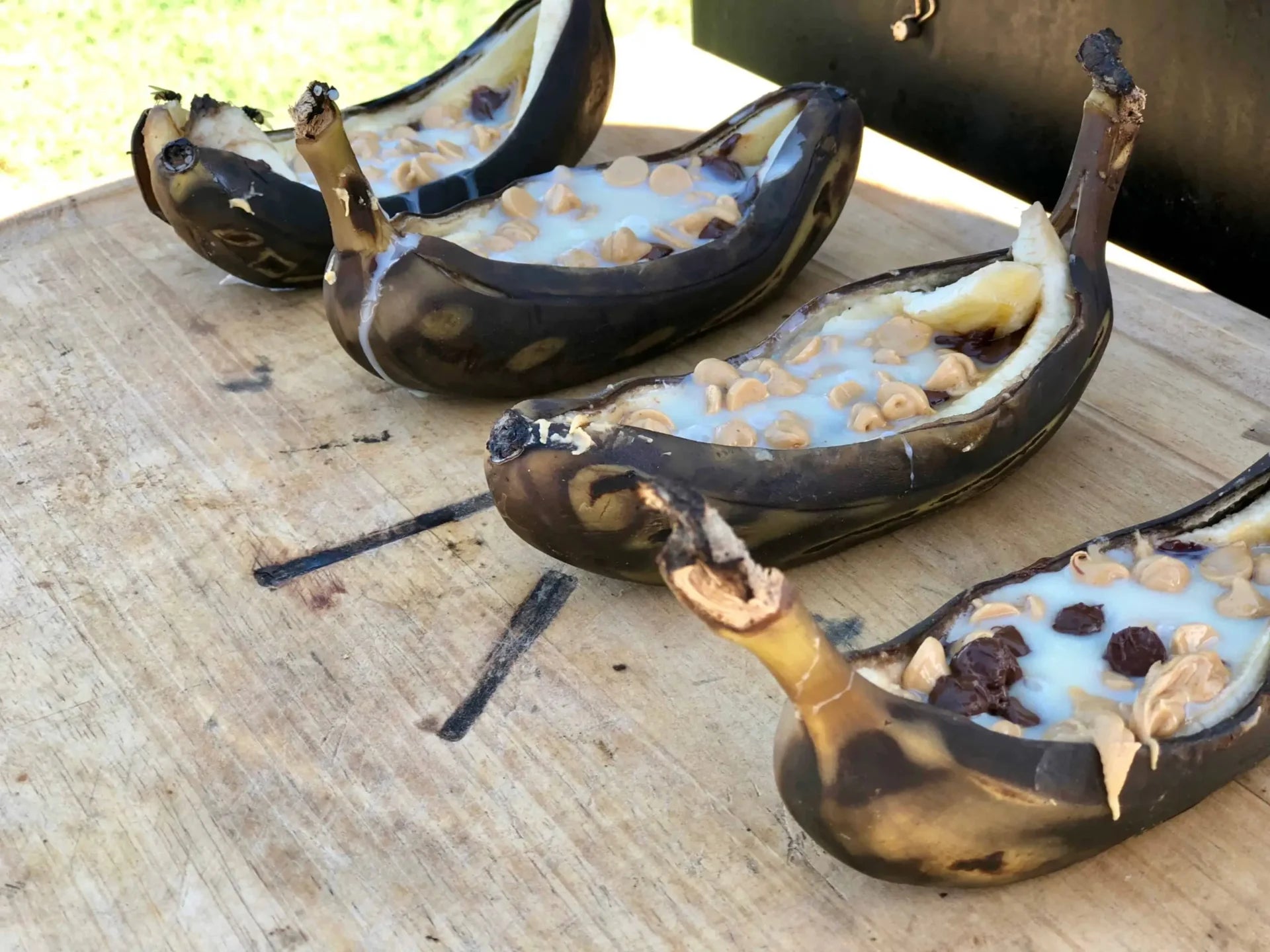 With this, the ship has sailed, the boat has landed and your grilled banana boats are ready to be eaten! I hope you enjoy it as much as we did.