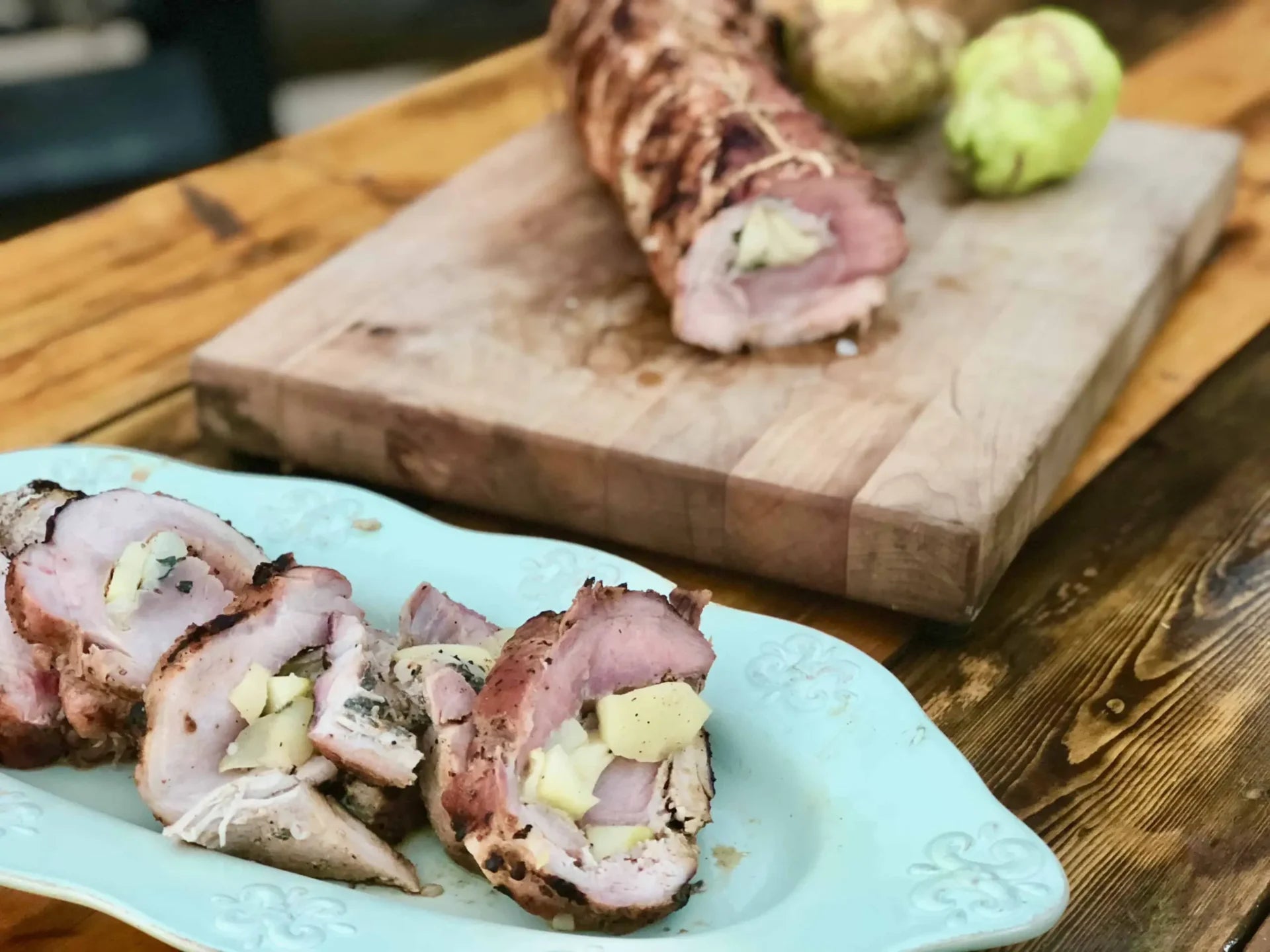 Grilled Whole Pork Loin - Stuffed with Pears and Apples