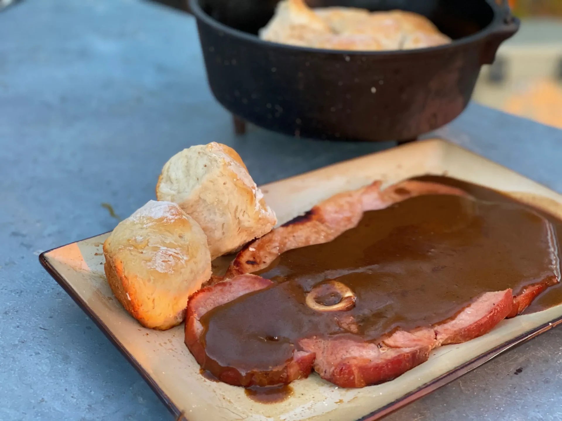 This may be the most critical step! Now, I like to pour that gravy over the ham, but then you'll need to sop it up with some homemade biscuits! The flavor will surprise you.