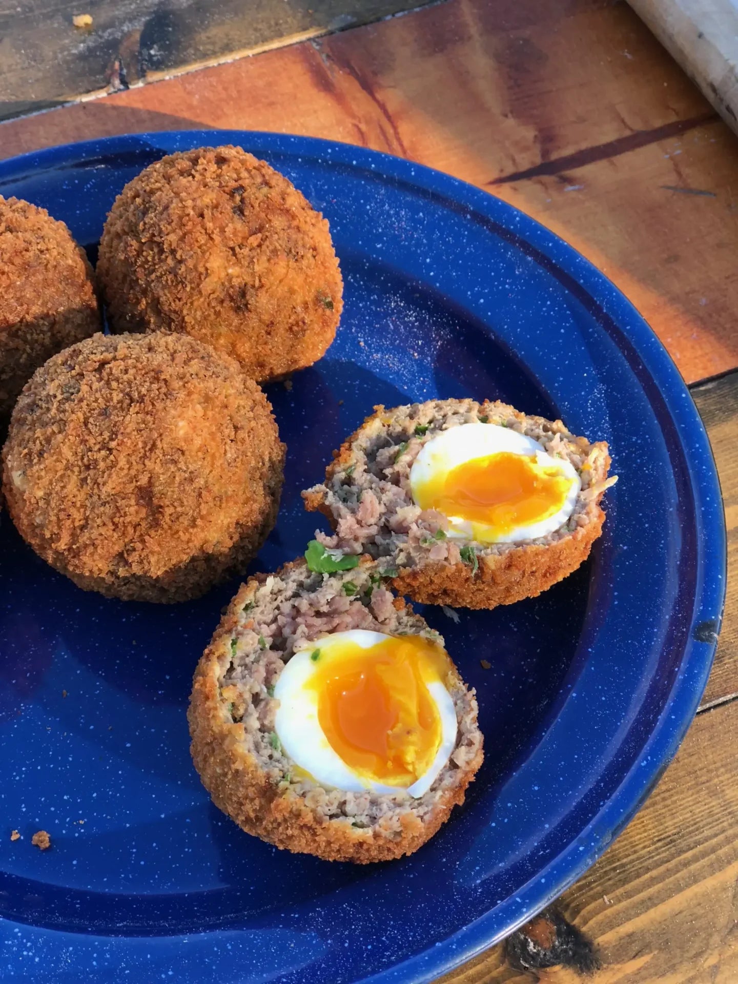 Now, remember, we didn't have to break out the Scotch bottle, but this is, sure enough, a good recipe to share! It is cowboy Scotch eggs without the Scotch bottle!
