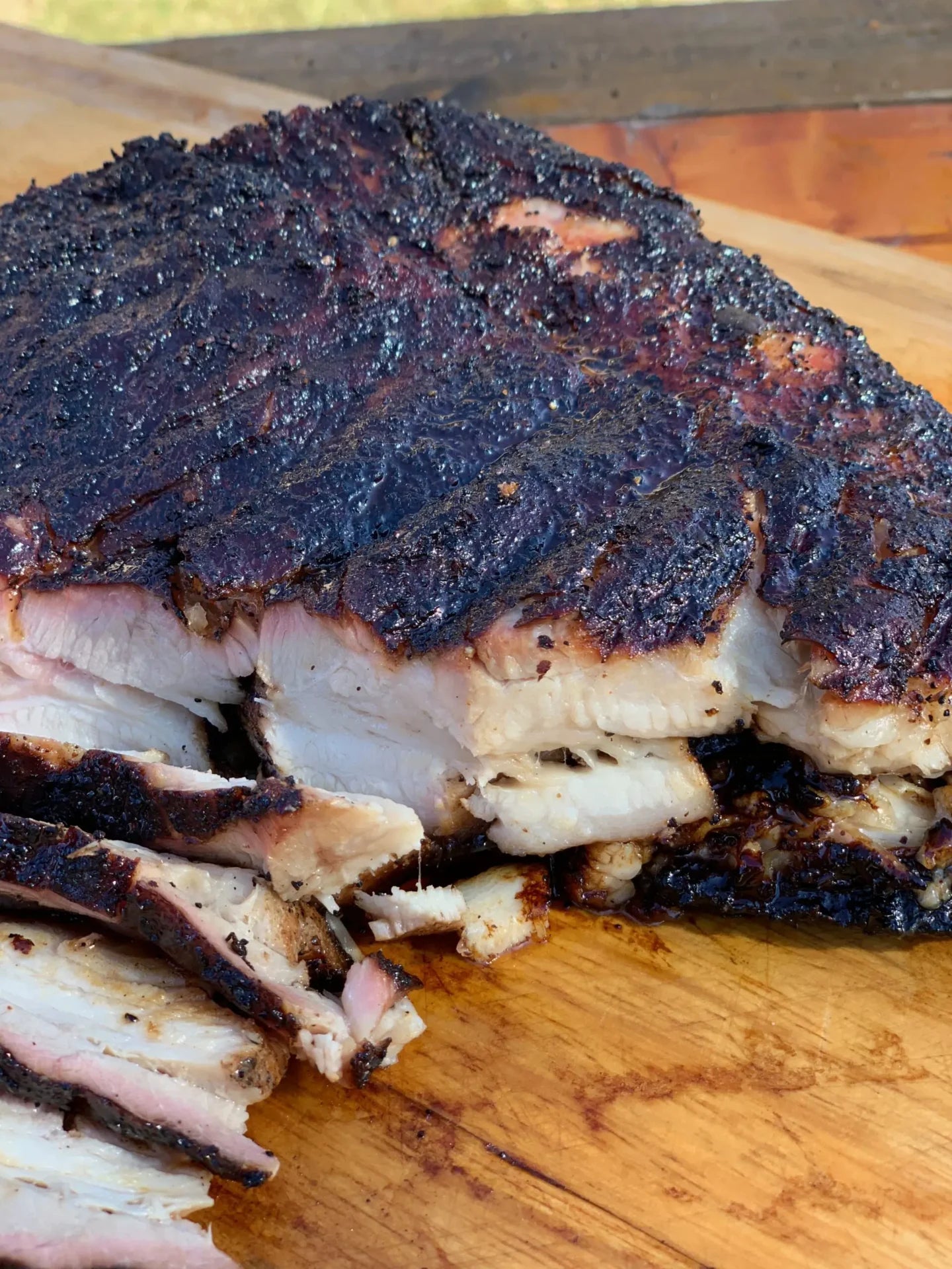 Slice it up and enjoy! You'll catch those good flavors of smoke, light coffee and caramelized brown sugar goodness.