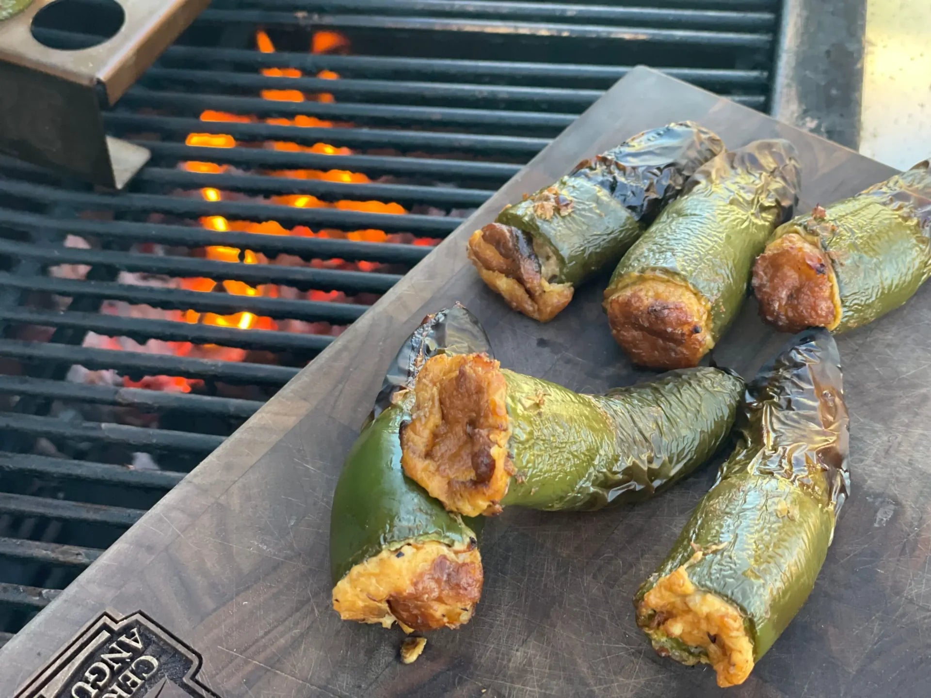 - Move the poppers over on the indirect heat side. Close the lid and continue cooking another 10 minutes or until the poppers are tender. Remove from the heat and allow to cool slightly before serving.