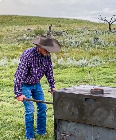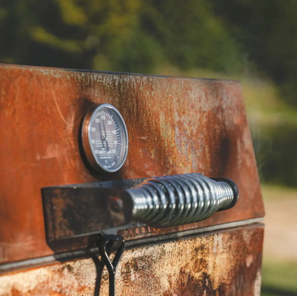 Get the convenience, flavor, and temperature control of a traditional barrel smoker, without all the headaches! Showcasing the signature Kent Rollins rustic cowboy-patina, Kent calls this his "Cowboy Smoke Box." This cooker is made by hand in Tulsa, Oklahoma of heavy-duty corten steel. Corten is specially designed to surface-rust and self-seal, creating a rustic outer shell that will continue to patina without affecting the integrity of the steel.