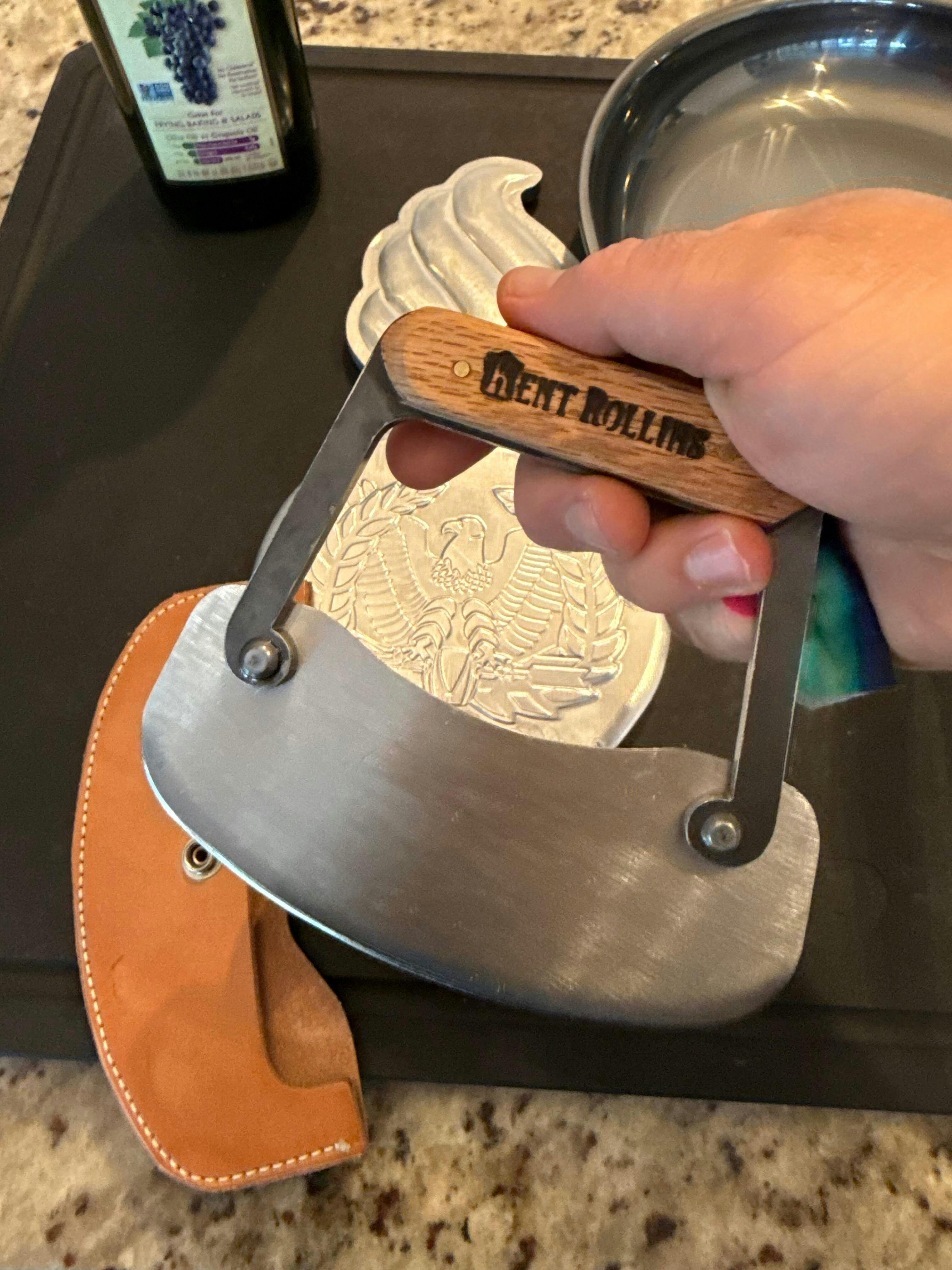 Cowboy Kent Rollins Hash Knife - Oak Handle - Tempered Steel - Traditional Chuck Wagon Knife - American Flag - Made in USA by a master craftsman