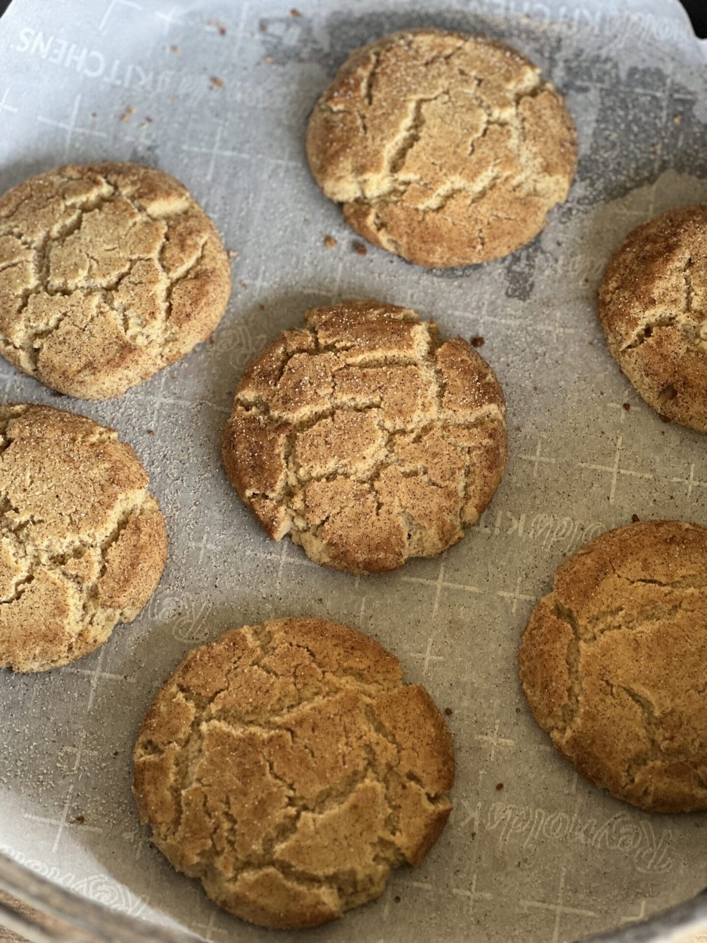 If you're cooking inside, bake for 10 minutes only. Even if they seem a little soft, take them out of the oven. They'll continue to set up as they cool. Rest the cookies on parchment paper for about 2 minutes before removing them to the wire rack.Tip: Sprinkle any leftover cinnamon and sugar over the warm cookies before serving.